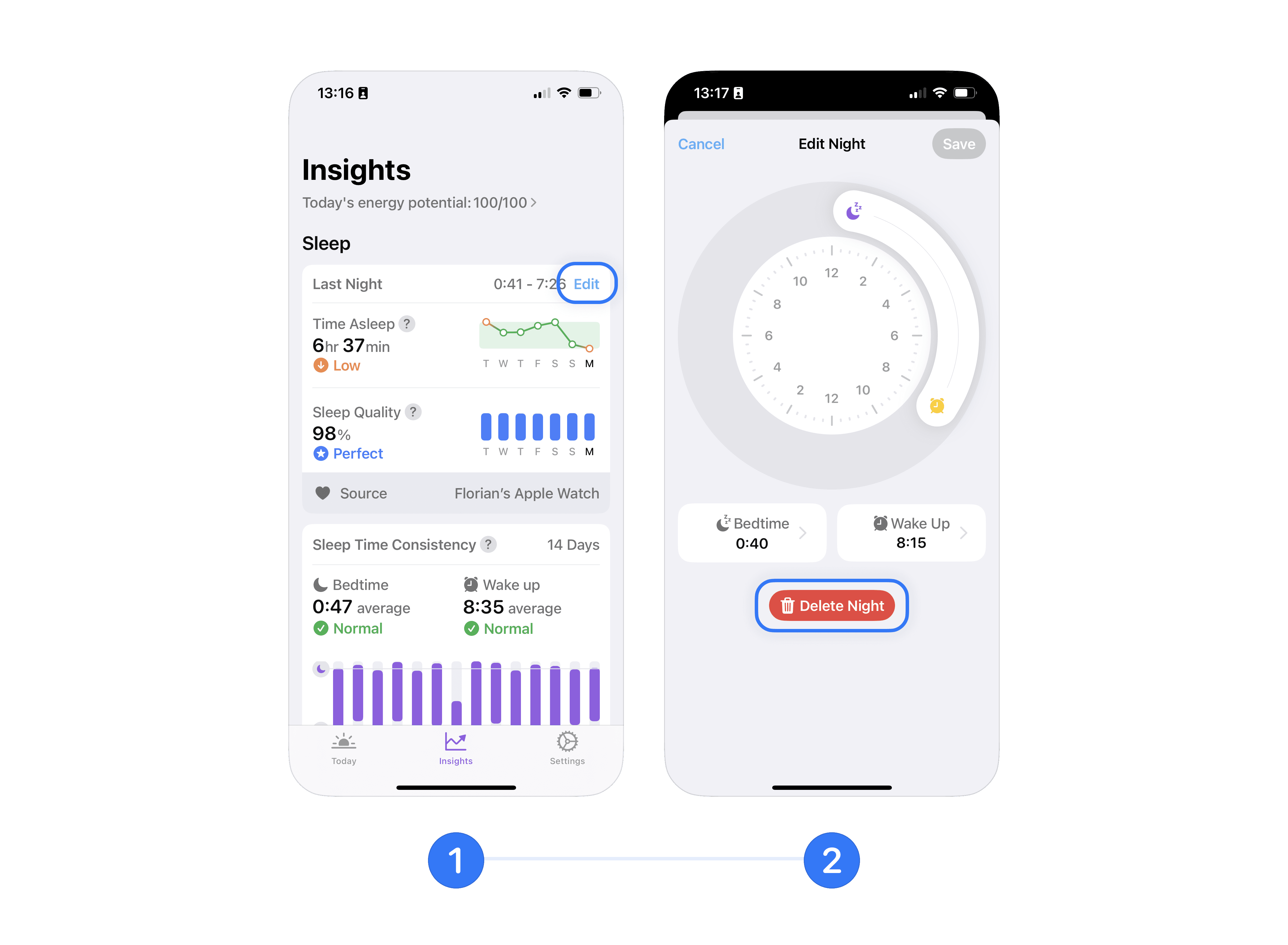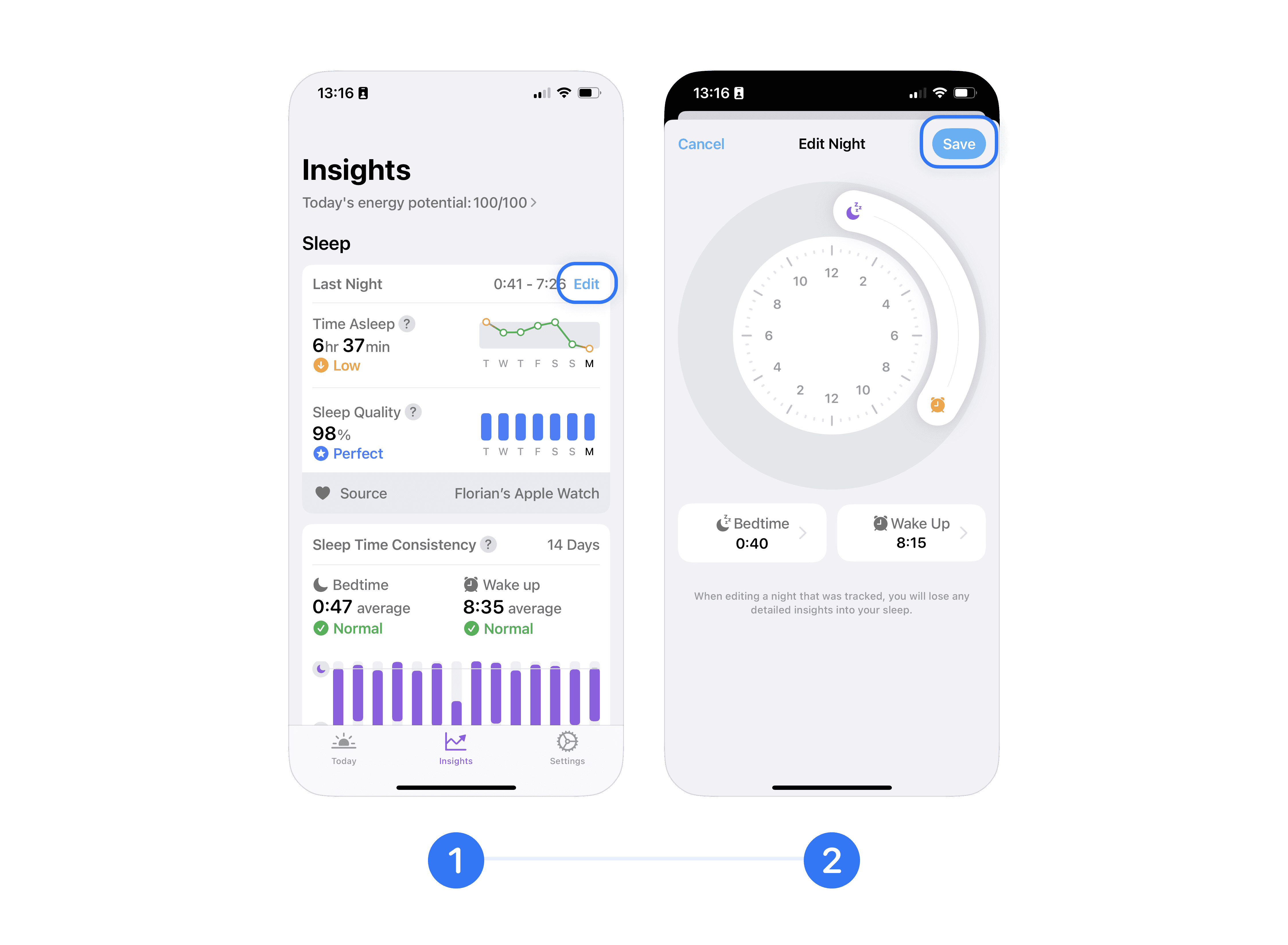 Note: Overwriting sleep data from Apple Health may result in the loss of sleep phase data and some insights.