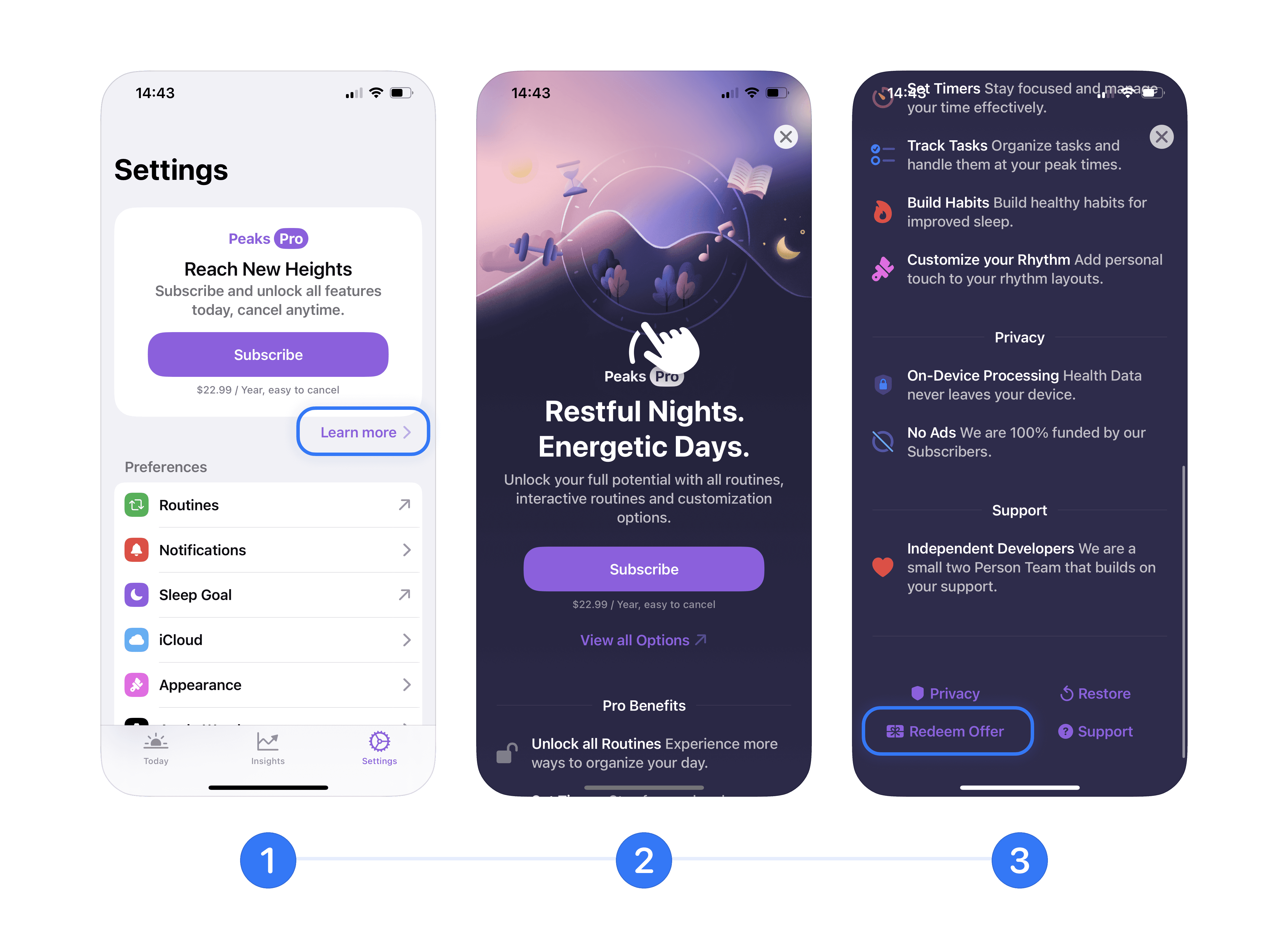 If you've got a special offer code for Peaks Pro, you're just a few steps away from unlocking all features. Redeeming your code is easy and can be done right within the app.