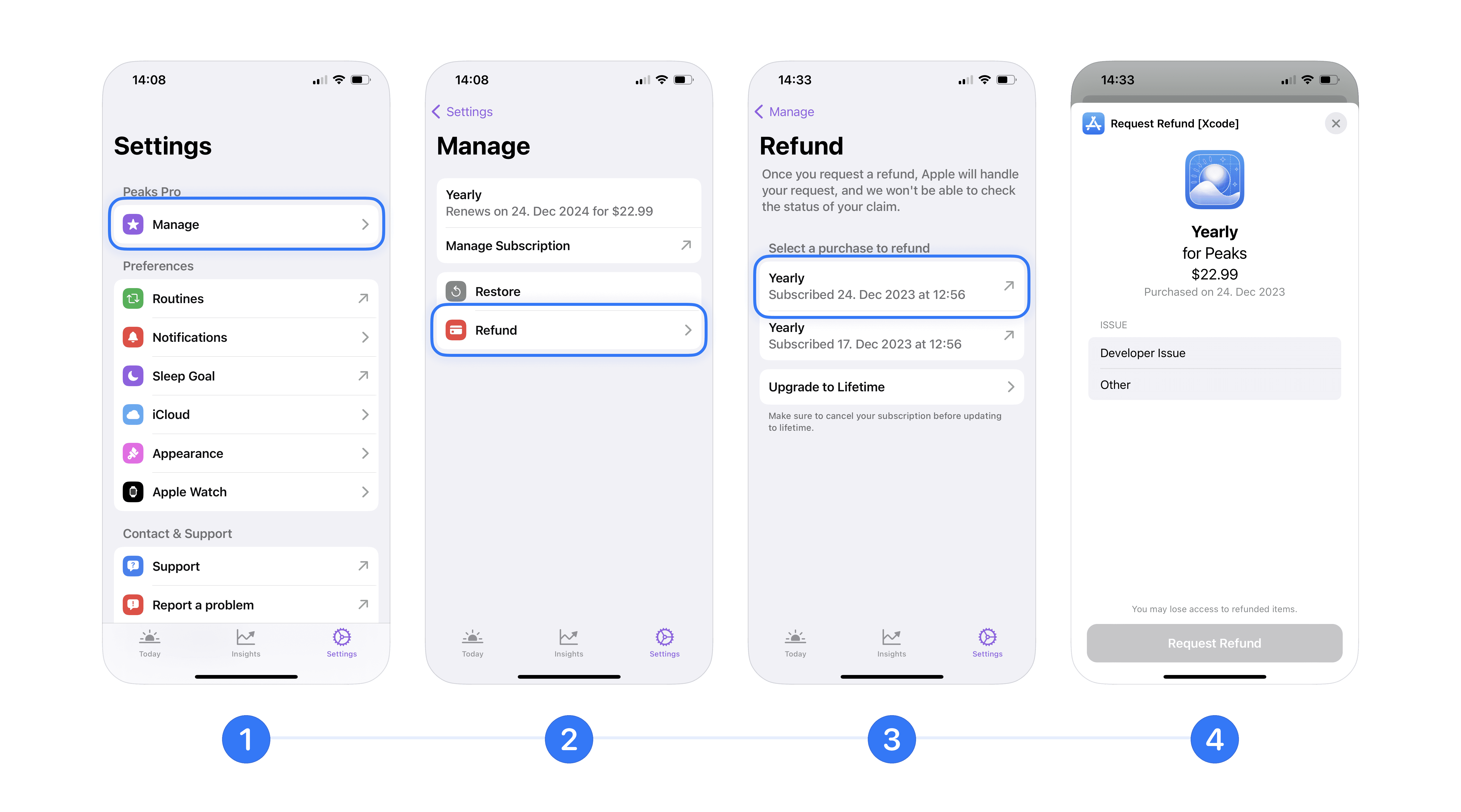 We understand that there may be instances where you need to request a refund for your purchase. This guide will walk you through how to request a refund for your Peaks app purchase.